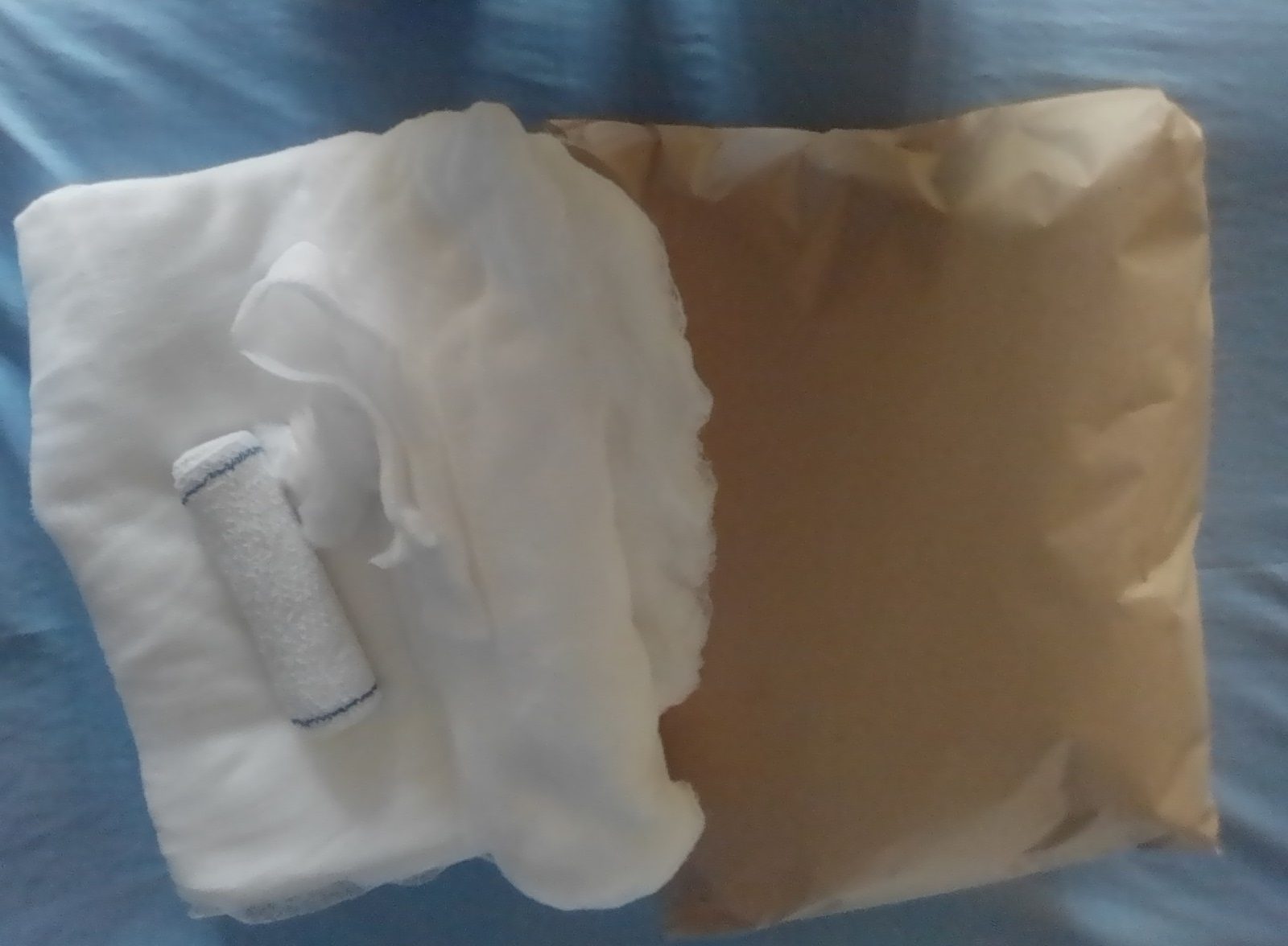 3 Big Gamgees, 20 Long Pieces of Guaze, 10 Big Cotton Wool Balls, 2 Crepe Bandages (6 Inches)