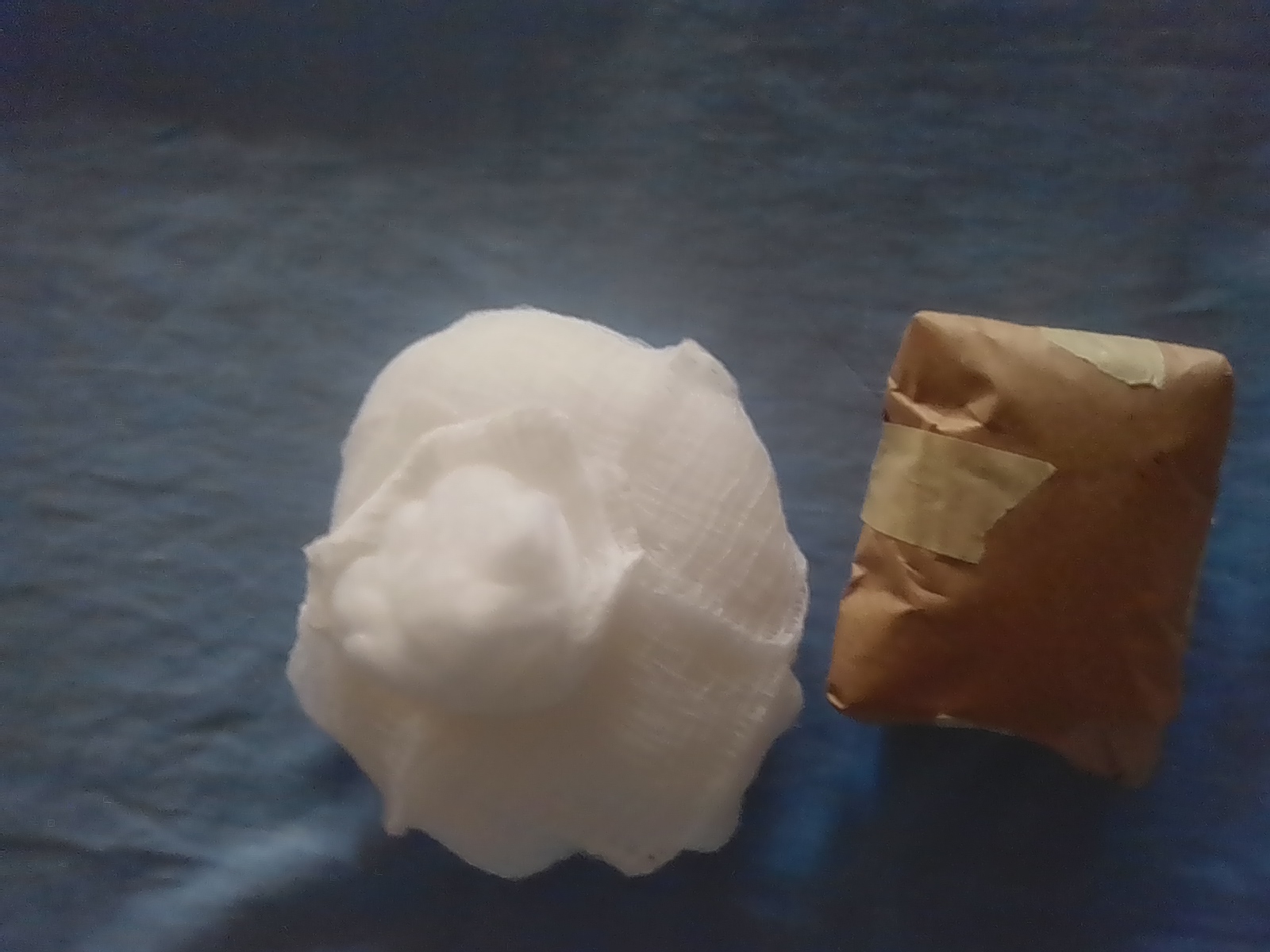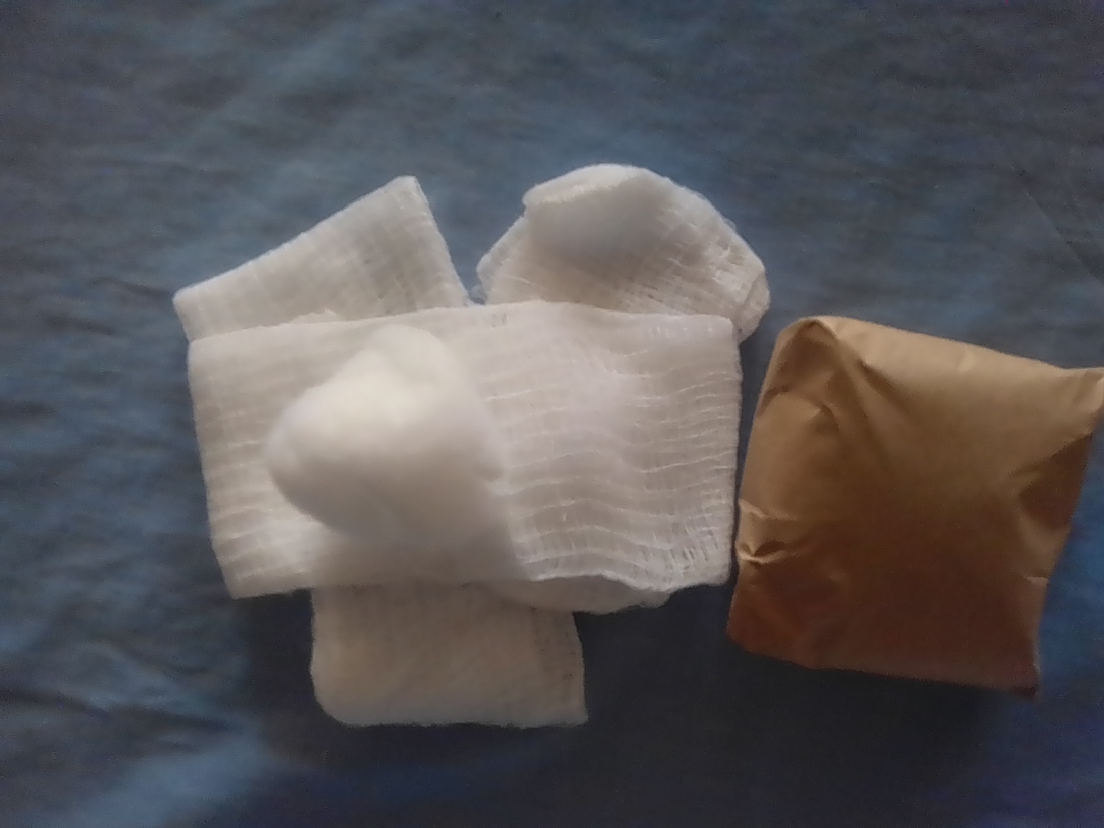 1 Small Gamgee, 7 Pieces of Guaze, 5 Cotton Balls.